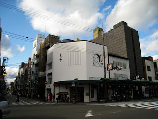 | 花見小路外的十字路口,大頭娃招牌就是京風最出名よじや保養品、吸油紙賣店。 |
