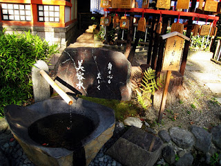 因靠近藝妓生活圈,裡頭另外設有美容神社,保佑藝妓們都能青春永駐,我也走過去喝一口美容水,參拜一下美容之神,祈求身體健康之外也能保有美麗面容。