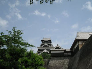 外頭很炎熱,城內卻很涼爽。邊爬樓梯邊傳出嘎吱的聲響,表示著它的年紀。來熊本城就要登城而小天下。上了小天守後,放眼一看,風景盡收眼底。果然是軍事要地,方圓好幾十里都看的一清二楚。面長崎、面鹿兒島.....,我開始想像戰國時代大家佔城而攻,戰事一波波的情形。站在天守迎面吹的風很涼,心脾通暢。